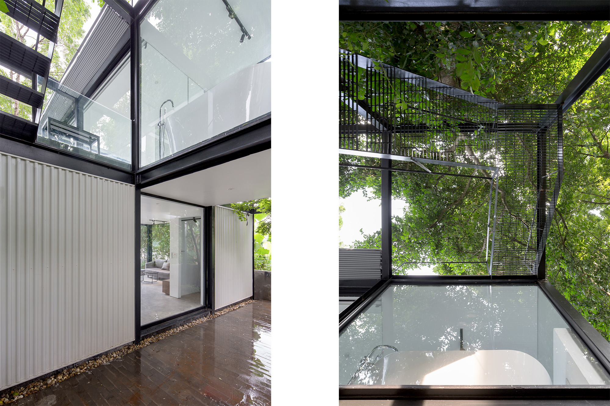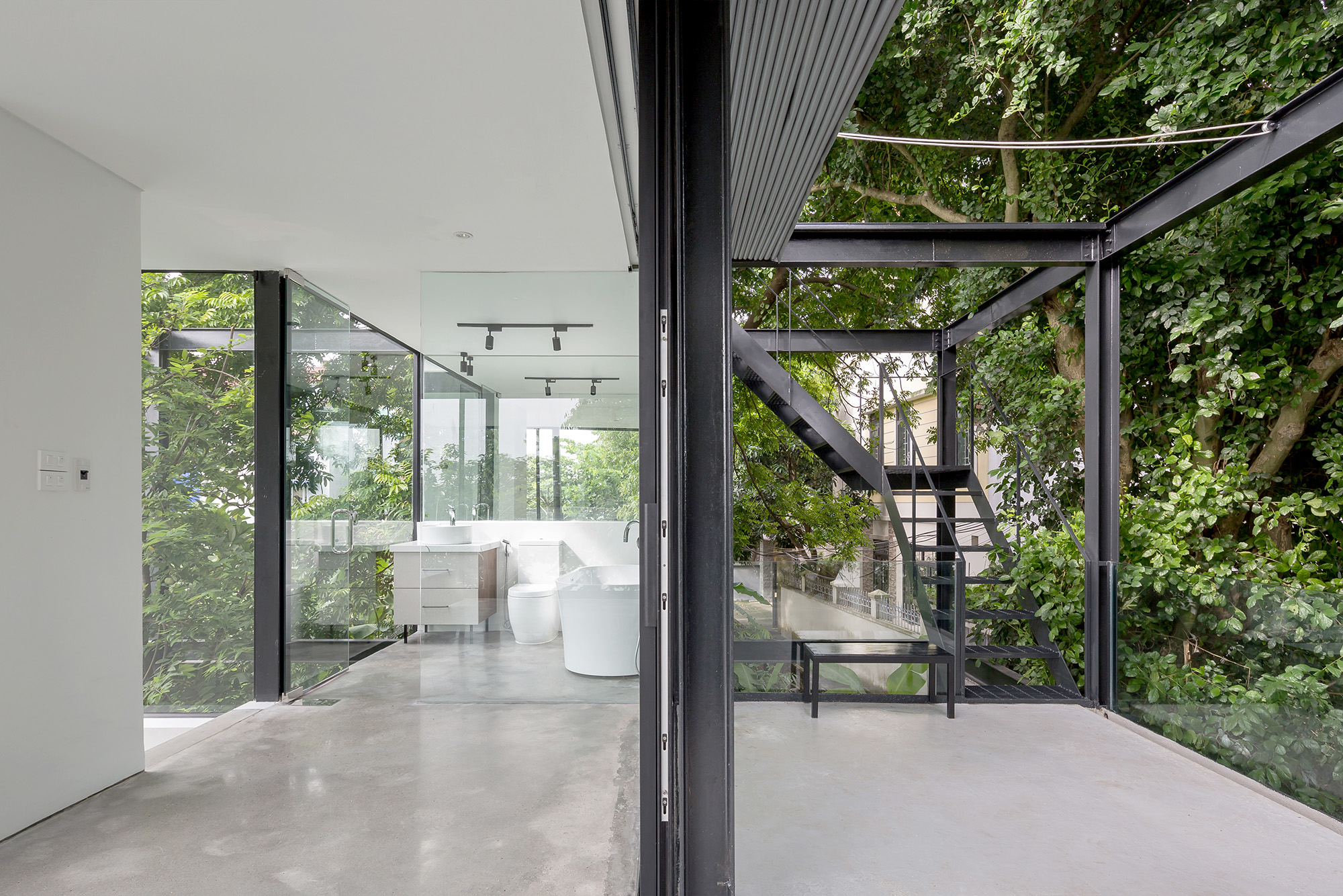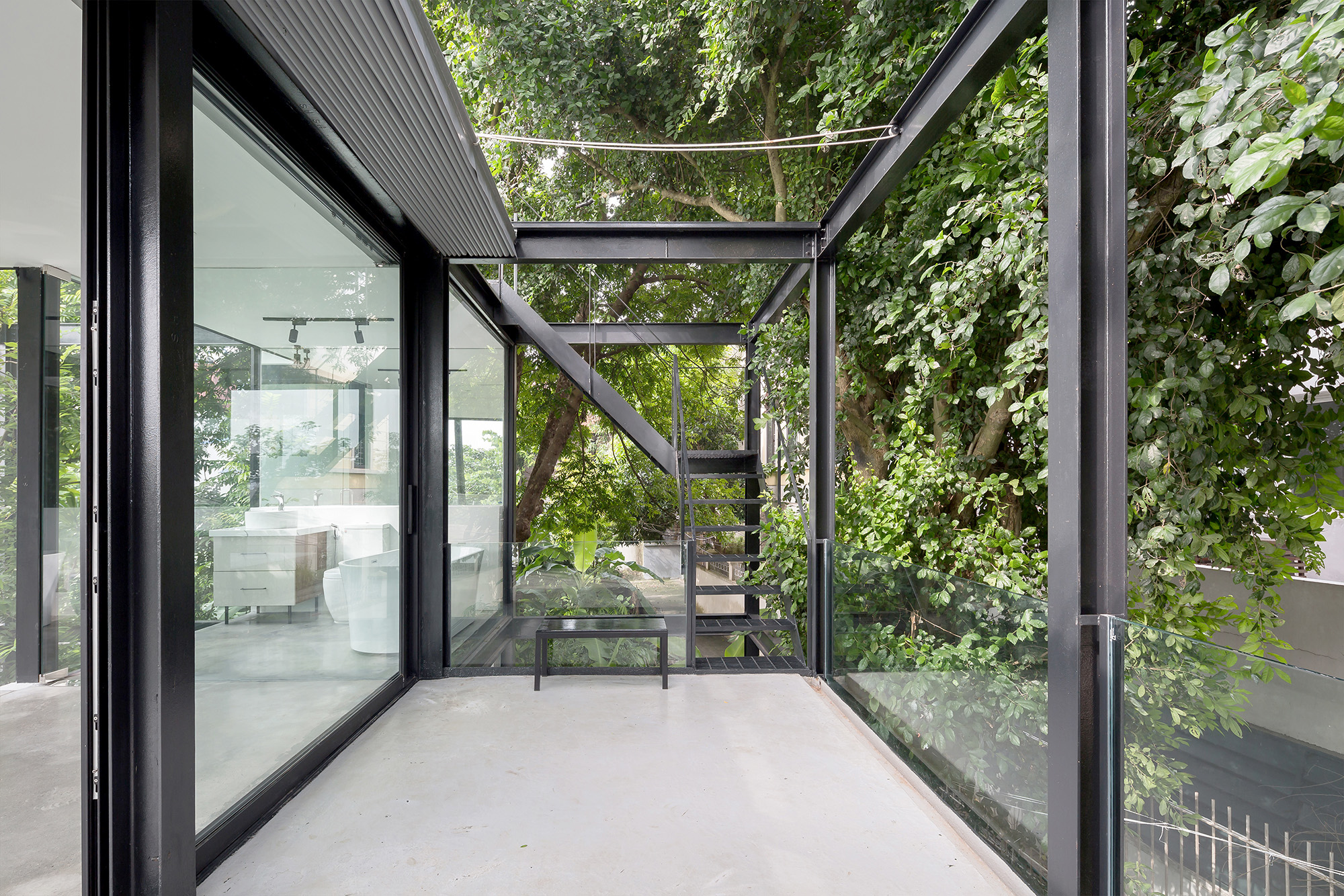 Like a stopover by a riverside, the small house Bac Cau, is "inserted" with a filigree steel structure interspersed into already existing ancient flora. The transparency of the house makes it seem to have no clear borders and disappear into the space-time of the riverfront.