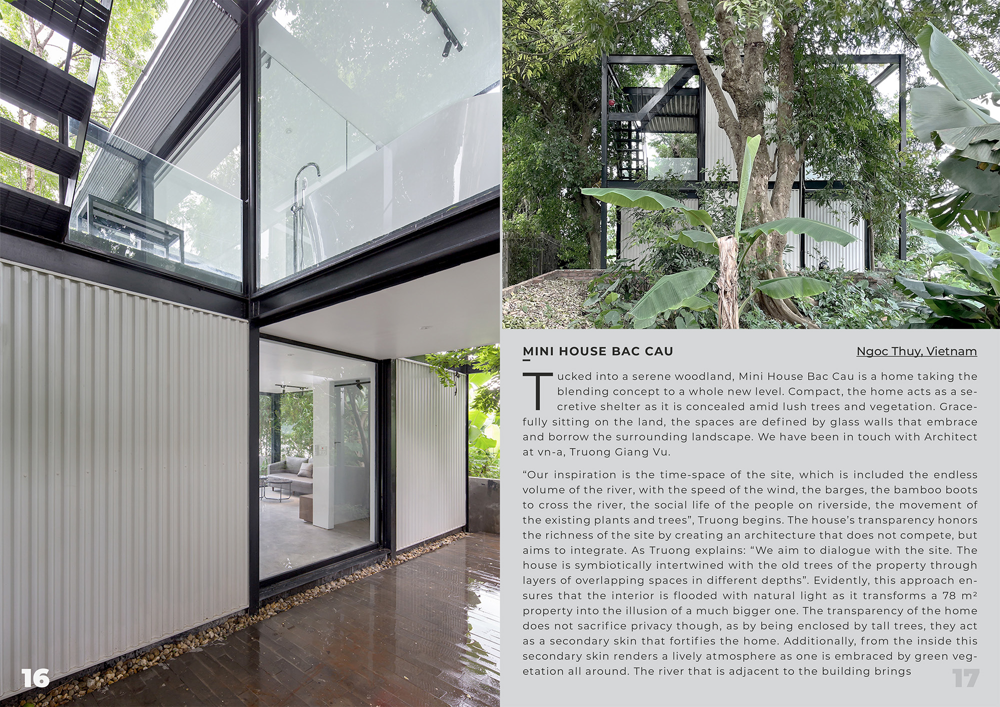 Like a stopover by a riverside, the small house Bac Cau, is "inserted" with a filigree steel structure interspersed into already existing ancient flora. The transparency of the house makes it seem to have no clear borders and disappear into the space-time of the riverfront.